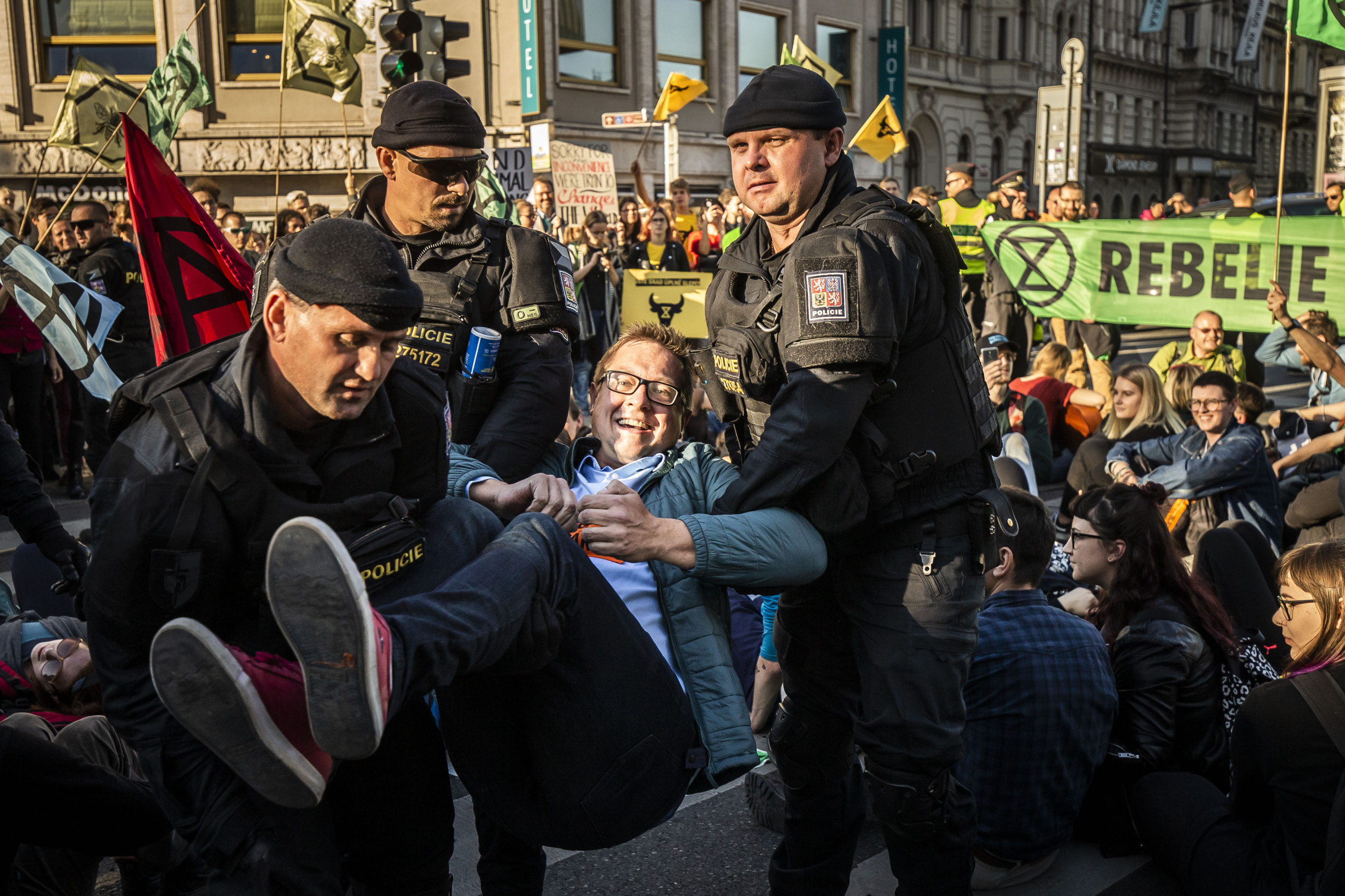 Obrazem: K magistrále v Praze se přilepili aktivisté, kteří nechtějí vyhynout. Nechyběla Červená brigáda