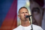 Na Václavském náměstí vystoupil komentátor David Klimeš. „Mohu psát v médiích, která jsou svobodná. To je to nejlepší, za to děkuju.“